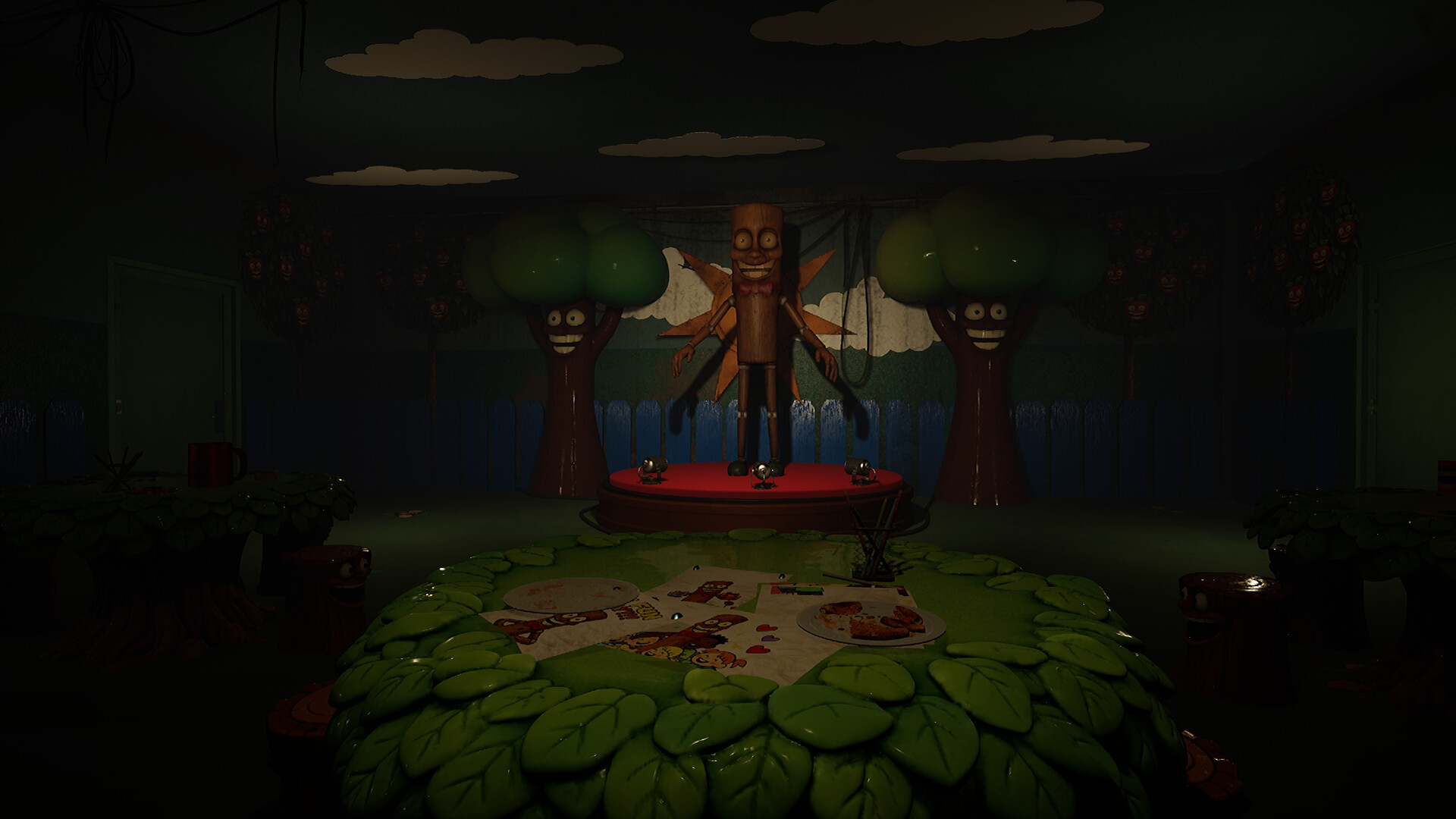 In this prototype, you will explore a small section inspired by Brain World Rots, a strange theme park filled with unsettling animatronics and hidden secrets.